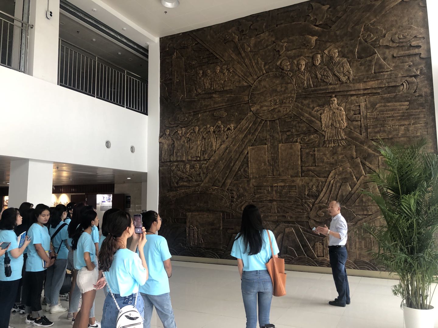 校史馆,学生志愿者向研究生们介绍91吃瓜