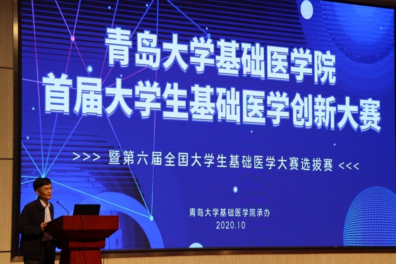 王建勋院长对本次创新大赛的举办表示了衷心的祝贺,并借此机会对多年来大力支持学院大学生创新创业工作的领导和老师表示感谢。王建勋院长在介绍学院历年创新比赛取得成绩后表示,基础医学的基本知识和技能是医学生走向实践的基础和根本,广大同学要积极参加各类学科竞赛和创新创业比赛,通过比赛提升科研能力和人才培养质量,为未来的科学研究打下坚实的基础。