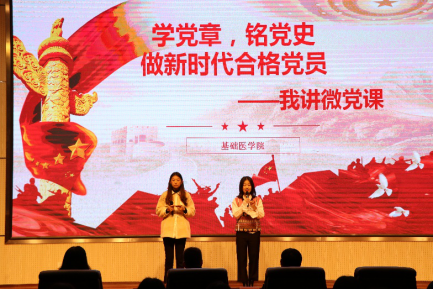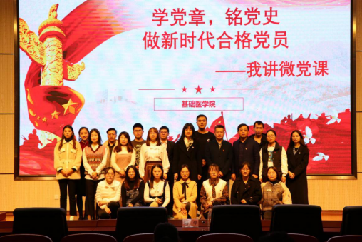 在医学综合大楼学术报告厅举行“学党章,铭党史,做新时代合格党员”《我讲微党课》,主题教育活动。学院党委书记赵士平、党委副书记刘学以及辅导员谭雪梅出席了本次活动。学院全体党员、预备党员、入党积极分子及学生干部代表近200人参加了主题教育活动。