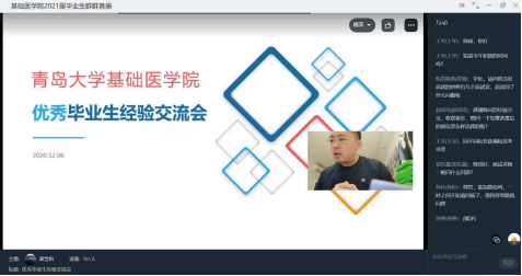 通过钉钉会议系统举行优秀毕业生线上经验交流会。会议由学院辅导员谭雪梅主持,学院党委副书记刘学参加了本次活动。2021届的优秀毕业生代表苗悦、丁丹、刘超龙、刘丙岩四位同学为学院全体研究生做了精彩的线上交流。