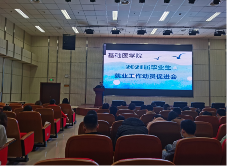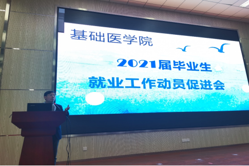 在医学教育综合楼会议厅召开2021届毕业生就业工作动员促进会, 2021届全体毕业生通过线上线下参加会议。学院党委副书记刘学做动员讲话,辅导员谭雪梅参加了会议。
