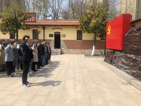 参观结束后,党员们来到纪念碑前,举行庄严的宣誓活动,重温入党誓词。铿锵的誓言回荡在纪念馆上空,坚贞的信仰镌刻入党员们心扉。征程万里风正劲,重任千钧奋力行,新时代党员将肩负起建设祖国的新责任、新使命,踏上历史新征程。