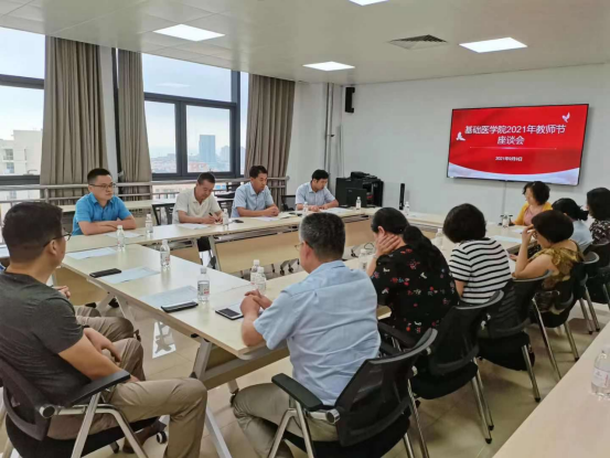 在浩园综合楼B810召开2021年教师节座谈会,庆祝第三十七个教师节。学院党委书记赵士平、院长王建勋、党委副书记刘学、院长助理狄国虎出席座谈会,各学系、实验室负责人、教师代表和2021年新进教师代表参加了会议。座谈会由刘学书记主持。