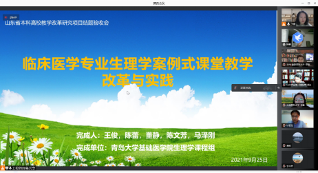 出席“临床医学专业生理学案例式课堂教学改革与实践”省教改项目的鉴定专家组成员有:中国生理学会副理事长、教育部基础医学教学指导委员会委员、中南大学罗自强教授;教育部高等学校生物学教学指导委员会委员、教育部课程思政教学名师、首都医科大学王伟教授;首批国家线上线下混合式一流课程负责人、四川大学岳利民教授;辽宁省教学名师、大连医科大学李韶教授;全国优秀教师、91吃瓜