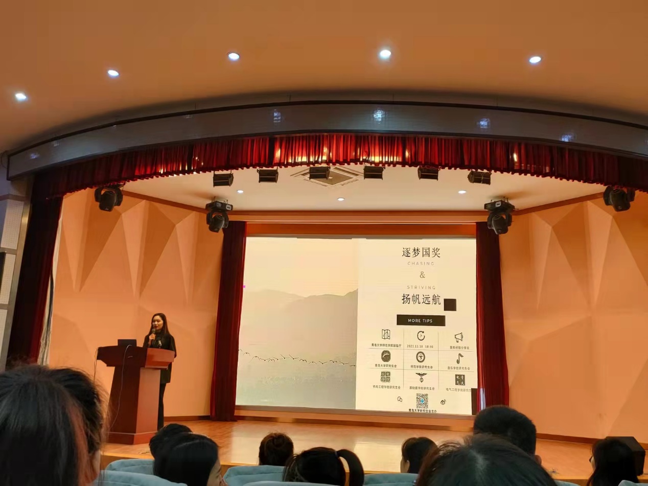 特种医学的王海丹同学讲述了她的研究生学习和生活、发表论文的经历,同时介绍了获得国家奖学金的基本标准。对于研一同学的提问,王海丹师姐耐心地给予针对性的建议。在融洽的气氛之中,国奖精神得到了延续和传承。