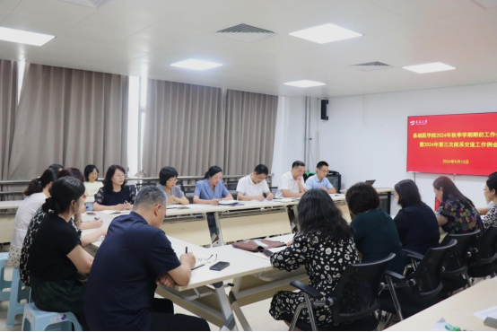 在医学教育综合楼B810会议室召开学习贯彻党的二十届三中全会精神暨2024年秋季学期期初工作部署会。党委书记亓慧主持会议,并就党的二十届三中全会精神进行学习宣讲,学院领导班子、学系主任、实验室主任及行政人员参会。