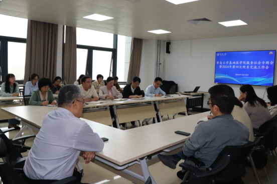服务社会专题会暨2024年第四次院系交流工作例会。会议由院长张蓓主持,学院领导班子、各学系和实验室主任、副主任及全体行政人员参会。