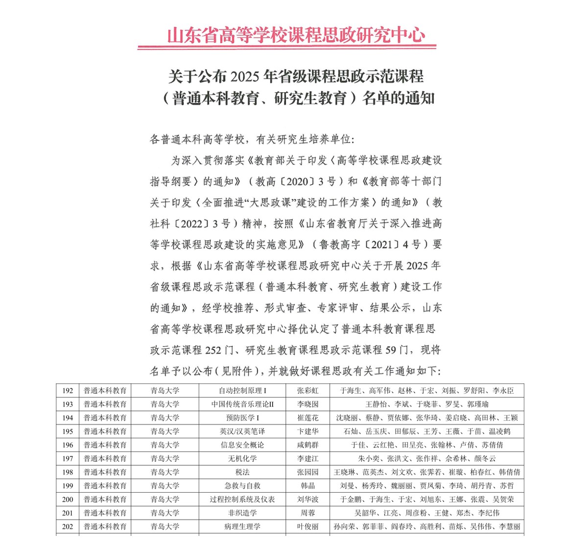 近日,山东省高等学校课程思政研究中心公布了2025年省级课程思政示范课程名单,我校共11门本科课程、3门研究生课程获批立项,其中91吃瓜