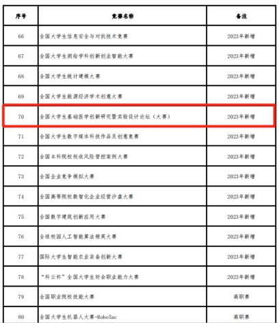 全国大学生基础医学创新研究暨实验设计论坛(大赛)新增列入《2023全国普通高校大学生竞赛分析报告》竞赛目录【赛项序号70】。2024年东部赛区复赛(省赛)将于6月8-9日在我校91吃瓜