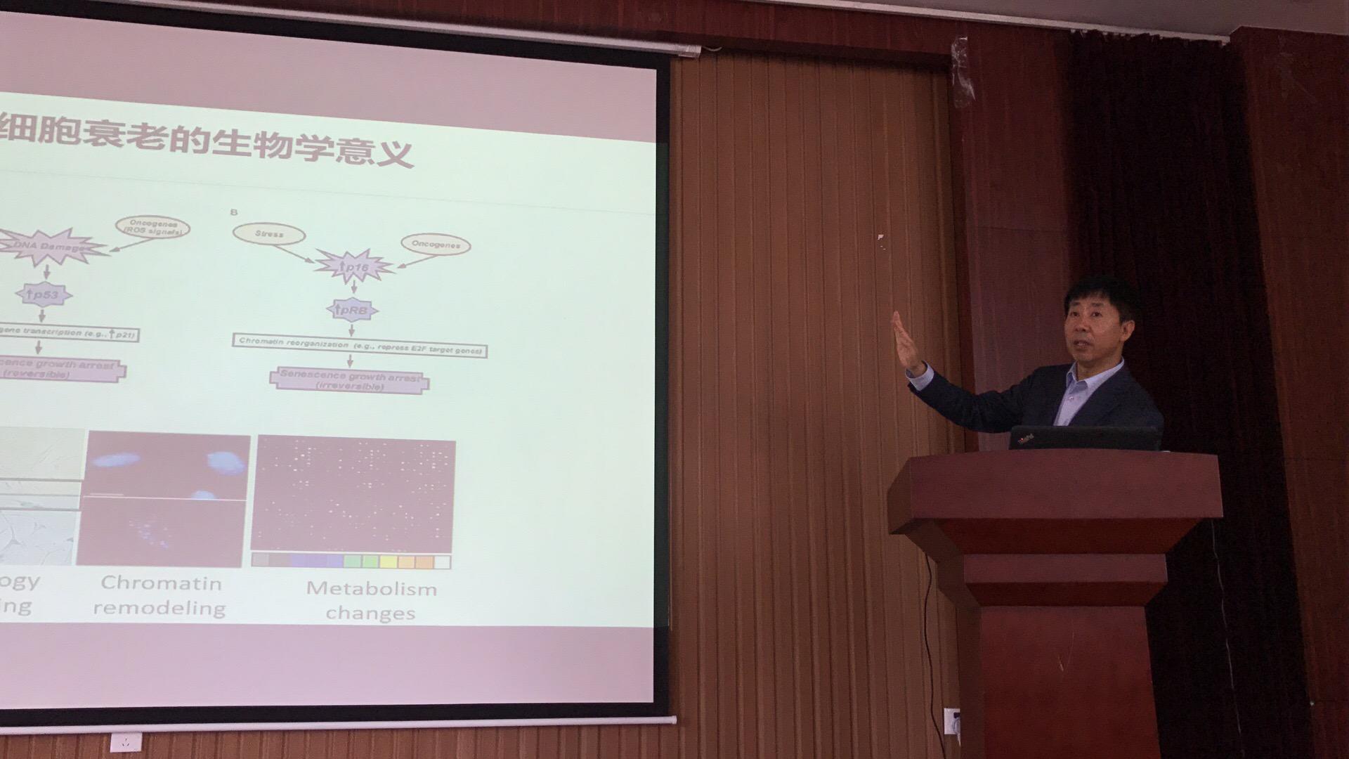 丛教授在讲座中从2009年端粒和端粒酶的发现获得诺贝尔奖入手,系统讲述了端粒和端粒酶的生理病理功能,以及端粒酶在衰老及肿瘤中的重要作用。张教授的报告由浅入深,用简洁的语言向大家清晰的展示了目前细胞衰老领域的研究方向和进度,让参会人员获益匪浅。