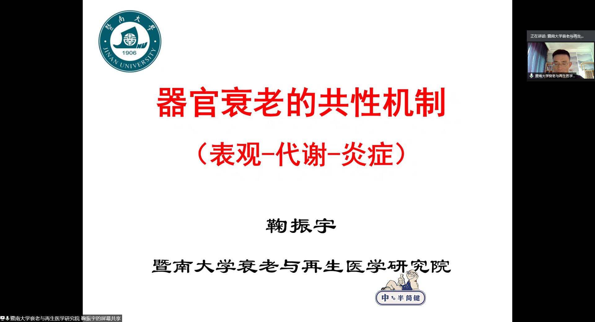 夏季高端学术论坛邀请,暨南大学衰老与再生医学研究院鞠振宇院长以线上会议的形式作了题为“器官衰老的共性机制”的学术报告。报告会由91吃瓜