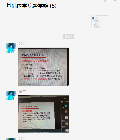 发挥名师的示范引领作用,学院邀请病理生理学课程负责人、山东省线上线下混合式一流课程负责人于小玲老师,国家精品资源共享课程负责人、山东省一流课程负责人陈忠恒老师进行线上公开课。通过多平台支撑在线教学模式,建立课前-课中-课后有效学习链条,通过课前签到、快问快答,案例引导,习题互动形成多样化师生互动模式,提升教师线上授课质量。授课教师不断优化教学模式、丰富教学内容、开展线上教学特色活动,注重总结优秀经验,挖掘课程亮点,扎实推动整体课程水平的稳步提升。