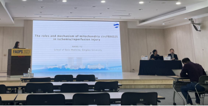 在本次会议中,我院生物学博士研究生王语和肖丹丹分别参与了大会专题研讨会和墙报展示。王语同学以《线粒体circFBXO25在心肌缺血再灌注损伤中的作用和机制研究》为题参加以“治疗心血管疾病的先进技术”为主题的大会演讲研讨会。参会教授分别对王语同学的发言进行了亲切的回应,她们表示,王语同学的课题方向新颖,内容丰富,为非编码RNA治疗心血管疾病提供了新的研究方向。此外,肖丹丹同学和王语同学参加了FAOPS会议墙报展示,并与各国专家讨论。
