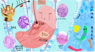 作品简介:众所周知,中国传统饮食习惯中很少分餐,聚会时也很少使用公筷,大大增加了幽门螺旋杆菌传播的风险,增加了许多患肠胃相关疾病潜在的可能性。本作品以大多数国人聚餐时幽门螺旋杆菌的口-口传播为切入点,重点描述了幽门螺旋杆菌可能对消化系统造成的疾病:萎缩性胃炎、胃溃疡、胃腺癌及黏膜相关组织淋巴瘤四种疾病。希望可以通过本作品让人们认识到幽门螺旋杆菌的可怕,呼吁人们进行分餐制、聚餐时使用公筷,养成良好的生活习惯,免受幽门螺旋杆菌之痛!