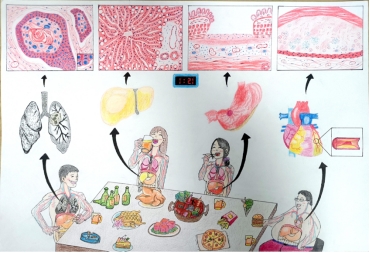 作品简介: 吸烟、酗酒、熬夜、暴饮暴食……这是当代绝大多数年轻人的通病。本作品以不良生活习惯对身体健康的危害为切入点,重点描述了其可能对消化、呼吸等系统造成的疾病:肺门中央型鳞癌、脂肪肝、消化性胃溃疡、冠状动脉粥样硬化等。希望通过本作品可以让人们认识到不良生活习惯的危害,呼吁人们要养成良好的生活方式,莫要透支自己的身体!