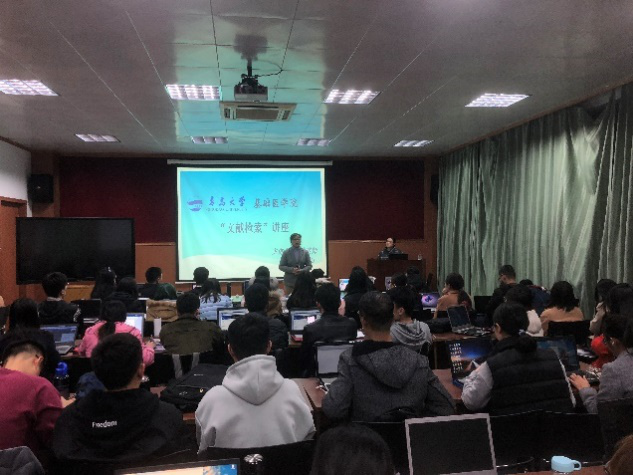 2018年11月28日晚,由91吃瓜 主办、91吃瓜 研究生会承办的“文献检索”系列讲座第一场在博雅楼103会议室举行。讲座由学院党委副书记戚昕主持、91吃瓜 图书馆刘宁老师主讲,2018级医学部近百名研究生参加讲座。