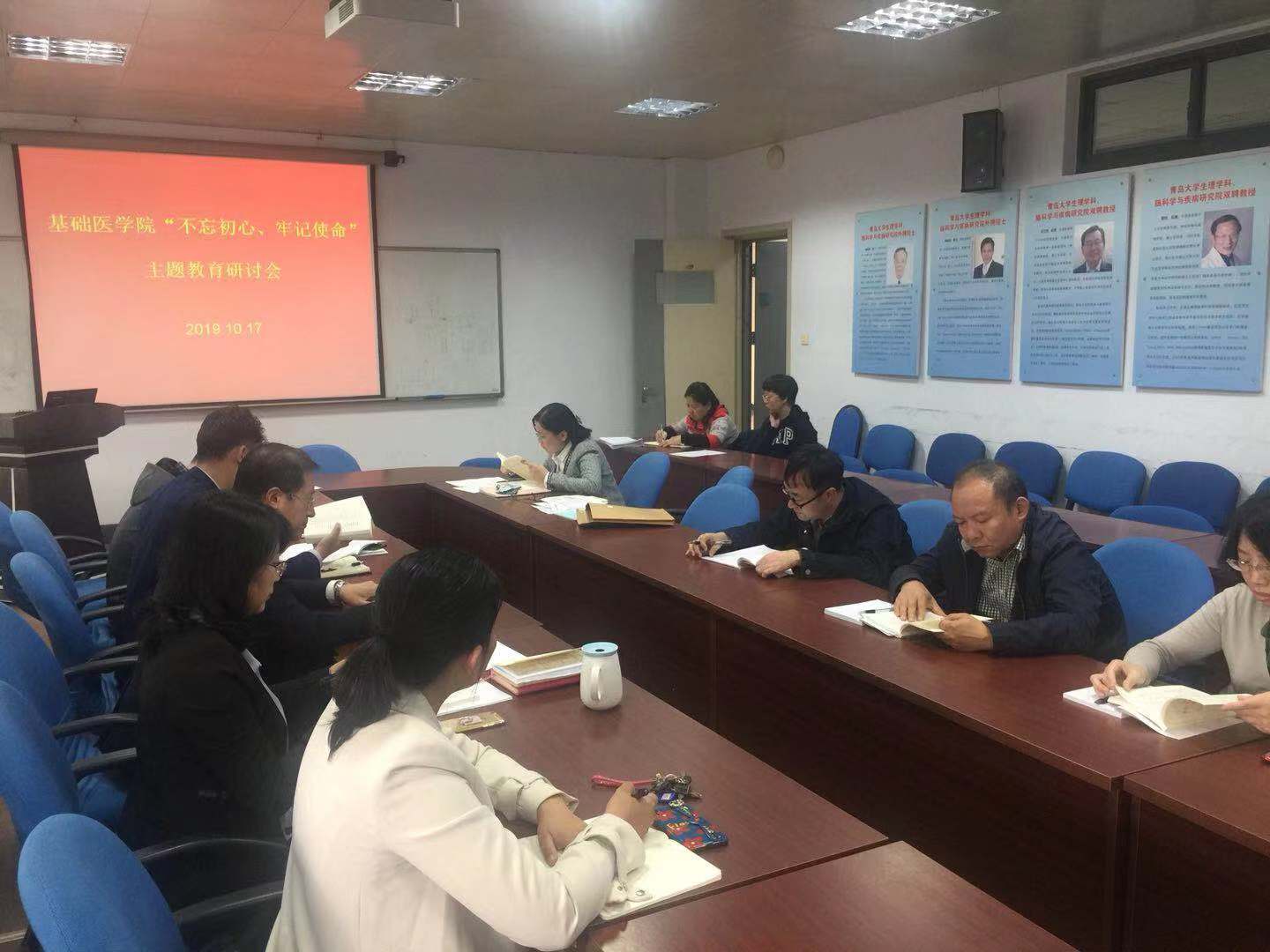 研讨开始前,与会人员以观看视频的方式,学习了习近平总书记在中华人民共和国成立70周年庆祝大会上发表的讲话。并再次集体学习《习近平关于“不忘初心、牢记使命”论述摘编》一书中的第四部分和第六部分,即“坚定理想信念,始终是共产党人安身立命的根本,”“坚持以人民为中心,把群众观点和群众路线深深植根于思想中、具体落实到行动上”。