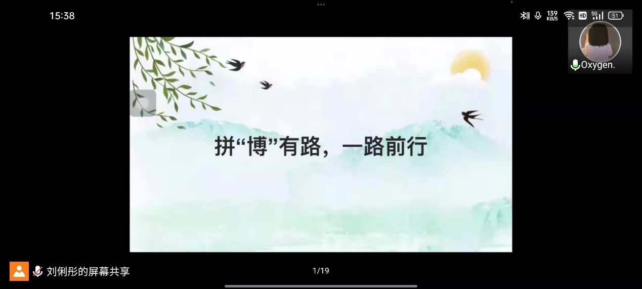 2019级特种医学学生,成功考取中山大学的博士研究生,她在分享考博经验时提出了以下建议:1、提前注意考试时间、报考要求和报考导师的研究方向;2、在当今考博竞争压力比较大的形势下,要提前备好简历尽快联系导师3、学会选择和取舍,合理安排时间。最后,她向大家介绍了考博复试内容,分为四个部分:自我介绍-专业英语—专业知识素养—PPT汇报。
