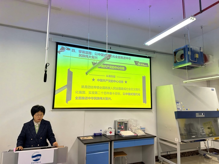 宣讲内容第一部分“继往开来:处于关键历史关口的一次重要大会”,章书记强调了“党的二十大是全国各族人民迈上全面建设社会主义现代化国家新征程向第二个百年奋斗目标进军的关键时刻召开的一次十分重要的大会,科学谋划未来5年乃至更长时期党和国家视野发展的目标任务和大政方针”。通过学习,教师充分认识到党的二十大的重大意义,是“马克思主义中国化时代化新的里程碑”。
