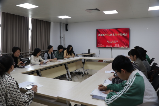 在医学教育综合楼B810会议室召开党支部书记工作例会,会议由丛红群书记主持,学院教工和学生党支部书记参加会议。