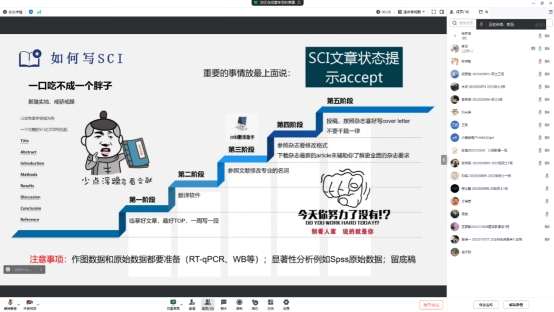 崔露雯向大家推荐了一些科研道路上实用的网站及公众号,并讲述了撰写实验记录的相关经验和技巧,强调了实验记录的重要性,希望同学们在学习的道路上,要力所能及地做得更好,不断超越过去;二是要做好时间规划,找到属于自己的学习方法,注重效率。