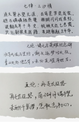 12月27日,我院面向广大青年团员开展红色诗歌摘抄活动。同学们通过摘抄自己喜欢的红色诗歌来铭记、缅怀和发扬革命先烈的奉献精神和艰苦奋斗作风,通过中国诗词不同发展阶段所呈现出来的特点,抒发家国情怀。《西江月·井冈山》、《初心永不褪色》、《听唱国歌》等诗词跃然呈现在同学们的笔尖,在摘抄经典中滋养心灵,汲取人生力量。