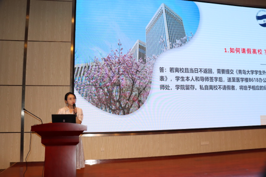 辅导员李慧丽老师从日常行为规范、宿舍管理等多个方面入手,为新生们讲解了全面而细致的学生管理规范和安全教育。同时,她还介绍了学院为学生提供的各类支持和服务资源,如学业奖学金、勤工助学等,帮助新生们更好地适应研究生生活。