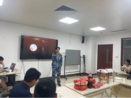 杨子臻学长给同学们准备了消暑清凉的西瓜,各种零食饮料也一应俱全。同学们借此机会放松身心,从疲惫的军训生活中获得新的动力。