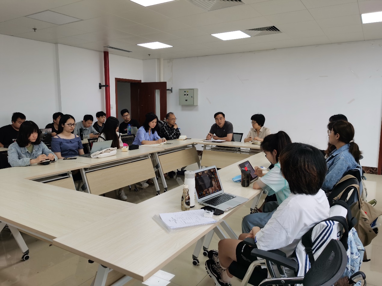 的李尚勇老师、何宁宁老师、王洛洋老师和袁俊华老师。答辩现场氛围融洽,每位同学对自己的课题分别从选题背景、研究方法、研究内容、创新之处、研究成果等方面进行了全面而精炼的汇报。同时,答辩委员会的各位专家认真听取了学生们的汇报并根据论文和学生现场汇报情况进行提问,就论文的框架、结构、用词、格式以及写作逻辑等方面提出了指导性意见和建议。