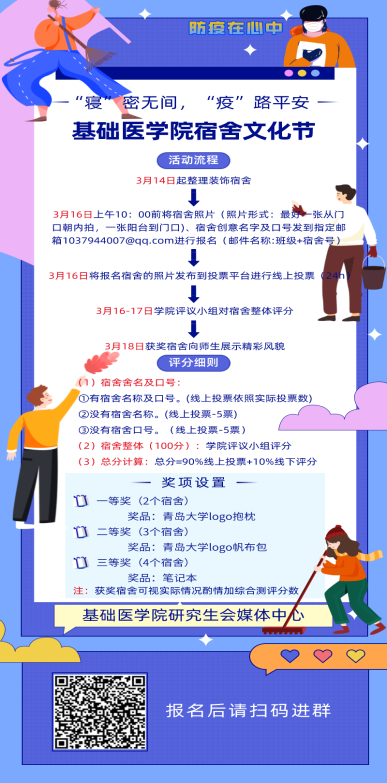 成功举办“寝”密无间,“疫”路平安宿舍文化节活动,本次评比由线上投票和线下评分共同组成。活动开始前在学院中得到充分宣传,共有33个宿舍积极报名。