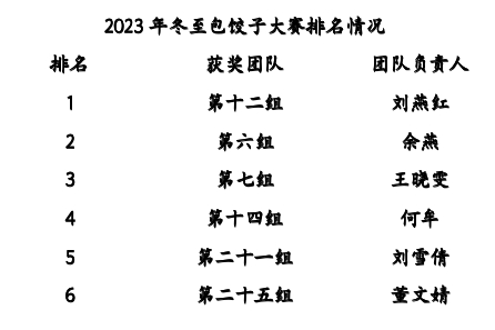 本次活动分为“团队计数赛”“花样饺子赛”和“高手过招赛”三个环节。同学们积极踊跃报名,由硕士、博士研究生组成的共计9支队伍参与本次活动。经过三轮趣味横生的角逐,最终积分榜如下。