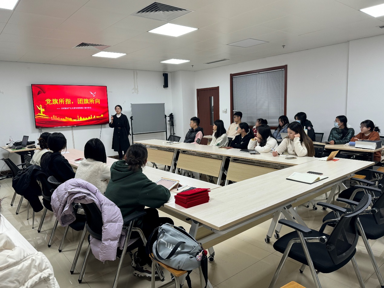 12月12日,学院团委老师李慧丽带领全体学生骨干集中学习《中国共产主义青年团章程》,阐述了共青团作为中国共产党领导的先进青年群团组织,在引领凝聚青年、组织动员青年、联系服务青年方面的重要作用。共青团必须始终坚持“党旗所指就是团旗所向”,把培养社会主义建设者和接班人作为根本任务,把巩固和扩大党执政的青年群众基础作为政治责任。通过此次学习,大家深刻认识到,作为新时代的青年,要自觉践行社会主义核心价值观,以聪明才智贡献国家,以开拓进取服务社会,让青春在为祖国、为民族、为人民的不懈奋斗中绽放绚丽之花。