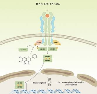 多发性硬化(multiple sclerosis, MS)是一种以中枢神经系统白质受累为主的自身免疫性脱髓鞘疾病,致残率极高,且发病机制尚不明确。目前尚无治愈MS的药物,因此对MS进行深入探究、寻找有效干预药物至关重要。实验性自身免疫性脑脊髓炎(experimental autoimmune encephalitis, EAE)与MS具有相似的免疫病理改变,是目前公认的研究MS的理想动物模型。黄芩素(5,6,7-trihydroxyflavone, C15H10O5, BAI),一种从中药黄芩根中分离的天然黄酮类化合物,具有减轻炎症、氧化损伤,保护神经元等功效。小胶质细胞/巨噬细胞的极化方向是中枢神经系统炎症进展的关键因素。已有研究揭示了STAT1在M1巨噬细胞极化中的作用,并强调上调p-STAT1可促进M1分化。网络药理学的研究表明,许多黄酮类化合物可能通过靶向STAT1来调节促炎信号通路,其中包括黄芩素。因此,本研究首先探讨BAI能否减轻MOG35-55诱导的EAE小鼠脊髓脱髓鞘和炎症反应,进而探讨BAI抑制STAT1活化从而影响巨噬细胞极化的机制。结果表明,BAI治疗延缓了EAE的发病,减轻了临床症状、脱髓鞘和炎性细胞浸润。同时,BAI抑制体内外M1小胶质细胞/巨噬细胞的过度激活,显著减少M1小胶质细胞/巨噬细胞的致炎细胞因子的表达,抑制STAT1的激活。进一步研究显示,BAI具有与STAT1的SH2结构域结合的能力,在炎症刺激时,黄芩素与P-STAT1共定位于胞浆,而不是转移到胞核。该研究为黄芩素治疗多发性硬化症的临床应用奠定了理论和实验基础。