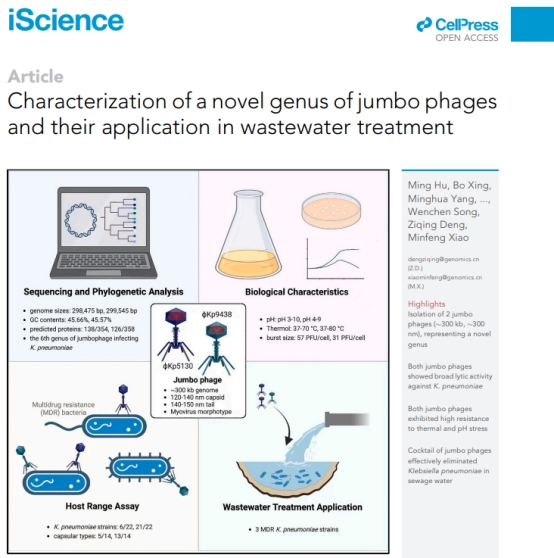 特种医学系胡明副教授课题组在应用噬菌体处理多重耐药细菌方面的研究取得新进展,研究成果以“Characterization of a novel genus of jumbo phages and their application in wastewater treatment”发表在Cell旗下新晋子刊“iScience”上(中科院2区,IF=6.17,DOI:10.1016/j.isci.2023.106947)。该项目由91吃瓜