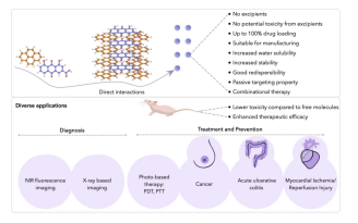 这项研究发现,共轭分子可以通过电荷平衡聚集的方式形成稳定的水溶性纳米自组装体。这种机制建立了一套全新的设计规则,将分子的特性与其在胶体中的行为直接关联起来,从而使得无需添加任何赋形剂就能轻松制备稳定的水溶性分散体。接着研究者将此规则应用到中药领域,筛选出多种中药活性成分组成的水溶性自组装体,并分别对其进行药效学评价。本研究对改善中药体内稳定性差,生物利用度低,半衰期短等问题具有重要意义。